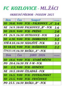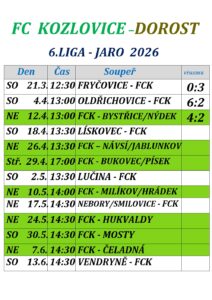 Víkendové výsledky muži NOŠOVICE - FC KOZLOVICE 3:2, br. Kabát J. ⚽, Zpěvák J. ⚽ dorost OLDŘICHOVICE - FC KOZLOVICE 6:2, br. Škrobal M. ⚽, Žáček J. ⚽ ... Více informacíMéně informací